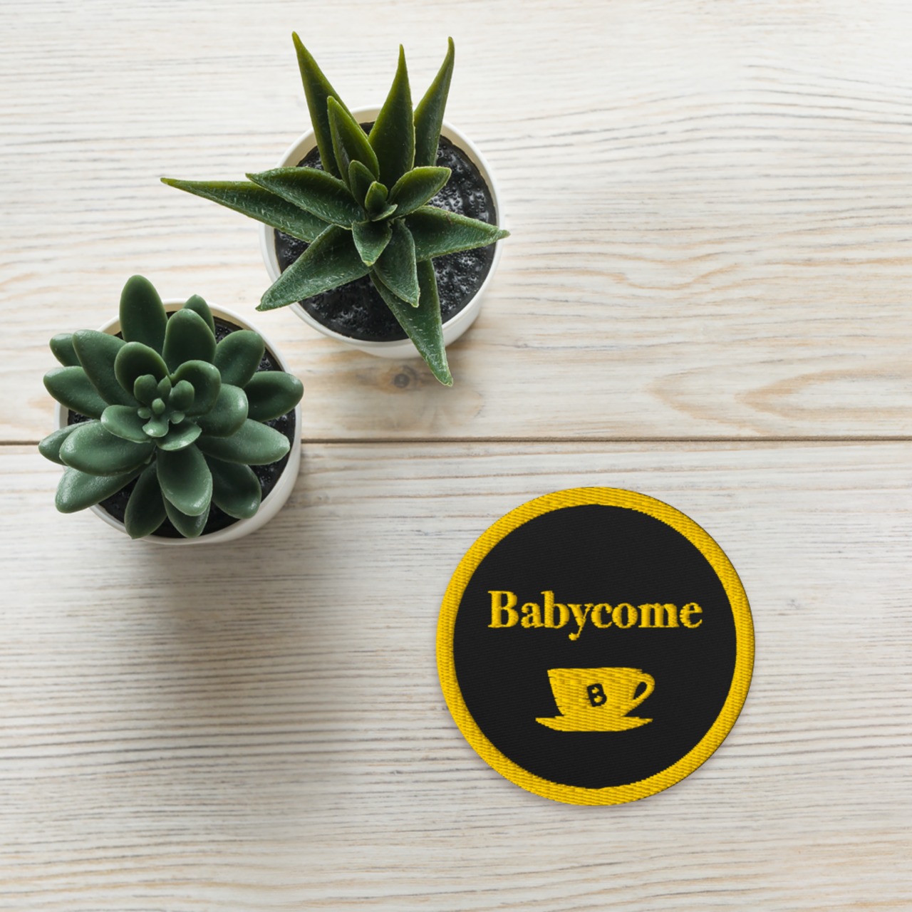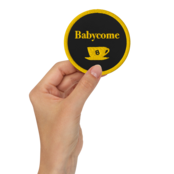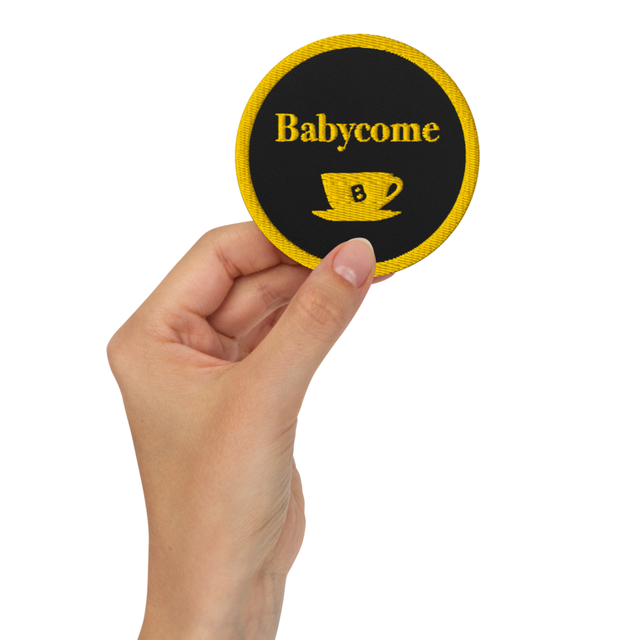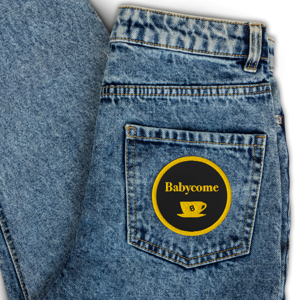 Babycomeロゴと、懐かしのMama Tea Break の目を引く刺繍デザインが、シンプルなアイテムにちょっとした遊び心と個性をプラスしてくれます。